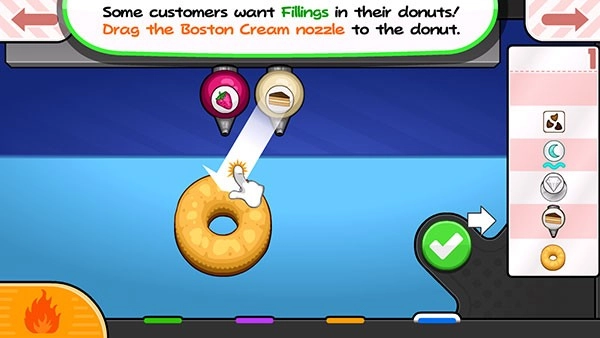 2、参与趣味十足的游戏挑战,在卡通风格的游戏画面中,共同制作美味可口的甜甜圈。