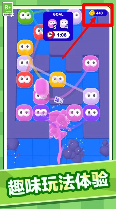 2.右上角的金币数量会随着游戏内表现增加,可用于解锁皮肤或道具,累积越多能开启更多趣味内容。