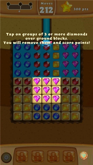 在《钻石矿工传奇》这款游戏里,玩家需要通过消除各种宝石来积累指定分数,从而完成通关任务。与《消灭星星》这类游戏不一样的地方在于,在《钻石矿工传奇》中,只要有3颗或者更多相邻的宝石,就能够把它们连接起来一起消除。此外,玩家还得清理土块。