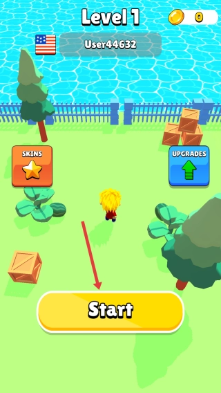 1、点击Start按钮进入Level1关卡,操控角色User44632在农场场景地图中进行移动操作。