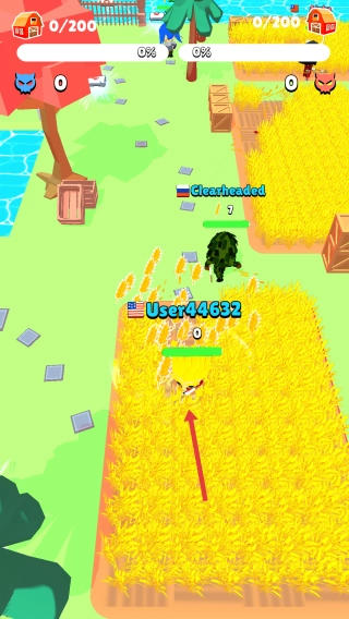 1、畅享竞技乐趣:玩家需要持续收割麦子,率先把仓库装满的人赢得胜利,在这场狂热的收割行动里,能体会到io竞技的独特快感,抢先于其他玩家收获粮食,尽情感受紧张又刺激的较量氛围。