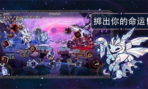 1、游戏是卡牌回合制玩法,屏幕下方是你的手骰,你需要用这些骰子将敌人净化回正常状态。