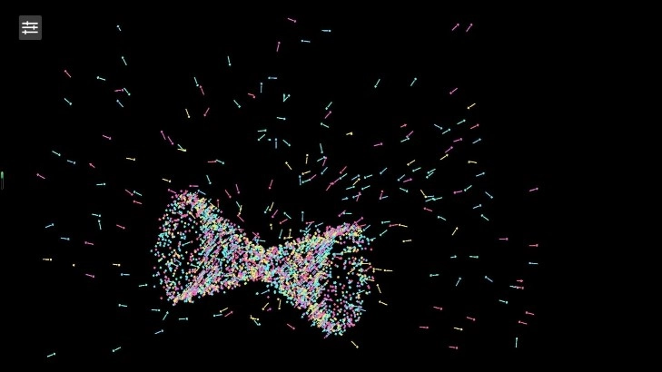 2、点击屏幕不同位置,观察粒子在点击影响下的行动轨迹,探索不同点击方式带来的动态效果。