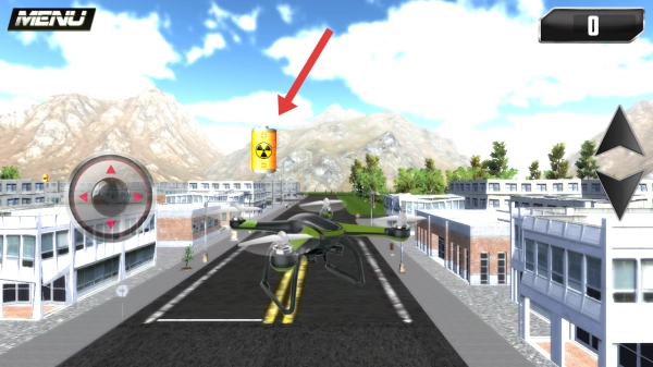 2、飞行时,需瞄准空中带有辐射标识的黄色能量罐,操控无人机靠近并拾取,即可获得分数奖励。