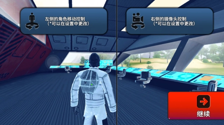 2、来到场景当中后,拖动左侧的屏幕控制角色移动,右侧屏幕装换视角。
