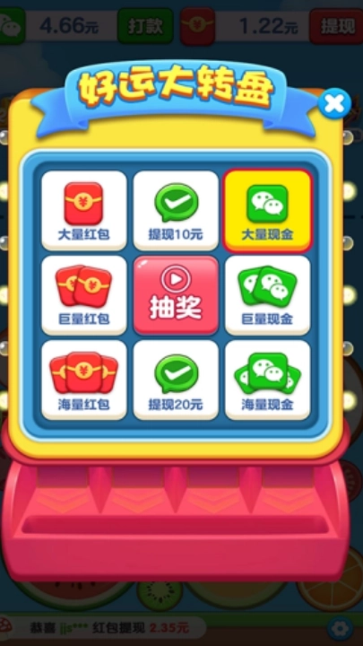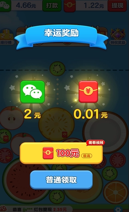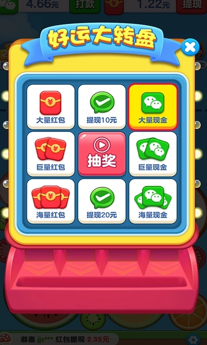 合成水果就能赚钱,将相同的水果进行合成,水果上有数字,不断增大红包越多。