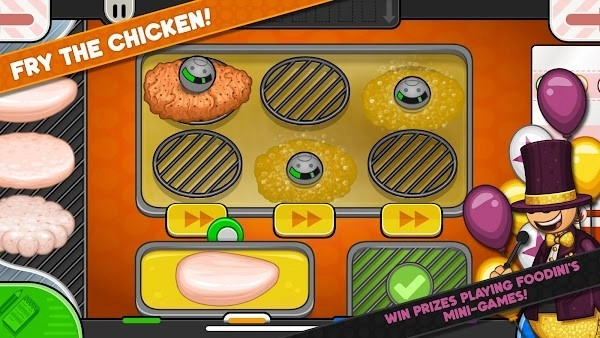 1、双厨房分工挑战:油炸区与装配区同步作业,考验手速与多任务处理能力,防止订单超时。