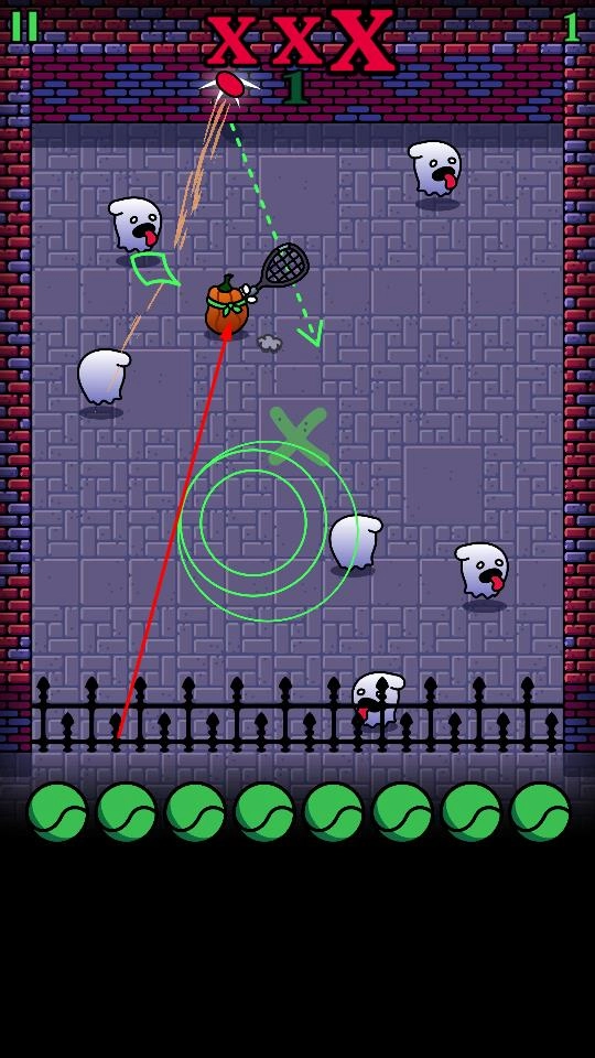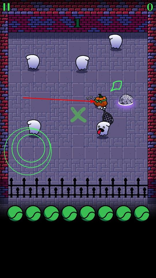 2、通过滑动或点击屏幕,操控南瓜头挥动球拍击打网球,借助网球的弹射特性与直线运动轨迹,瞄准四处游荡的幽灵。需留意幽灵的移动规律,提前预判并击球,成功击中即可击退幽灵。