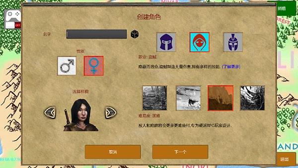 3、此时需创建角色,确定名字、外观、职业及难易度,若对职业与难易度的选择存在疑问,可参考下方的放逐王国攻略内容。
