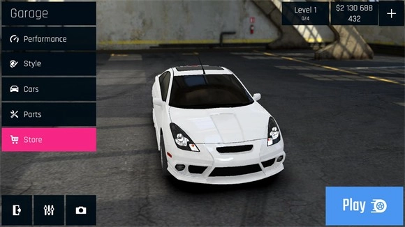 5、在主界面点击performance选项,即可对车辆配件进行升级;升级过程需消耗金币,而提升等级能够解锁更多配件。