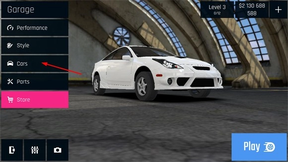 1、游戏可以购买全新的赛车,在主界面点击cars按钮进入车库。