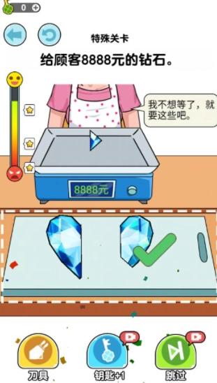 2、有些客人的要求比较刁钻,但玩家只要能称出他们想要的重量,满足其需求就行。