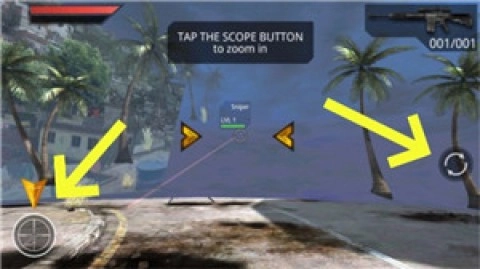 在游戏里,你能够随时切换武器,还可以配备狙击步枪,只要点击范围按钮就能放大视野。