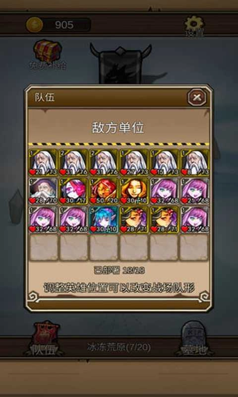 2、新颖独特的推图游戏玩法,合理搭配英雄和布置阵型就可以顺利过关,感受全新篇章快乐。