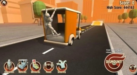 根据车型的差异,木头人能够摆出各式各样的姿势,选择在车内的姿势会相对安全一些,这样可以避免因为掉落而导致分数降低。