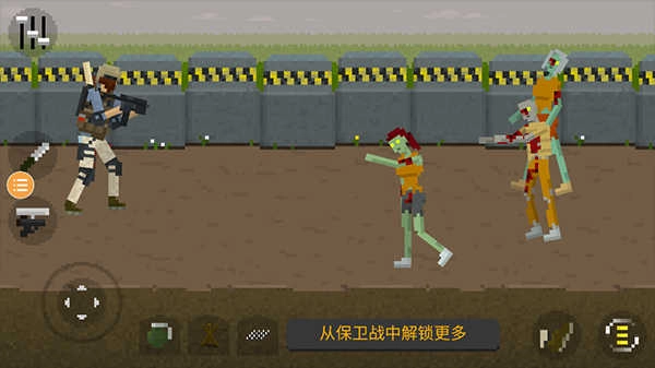 2、在新保卫战模式中玩家将手持枪支来迎接迎面起来的像素僵尸