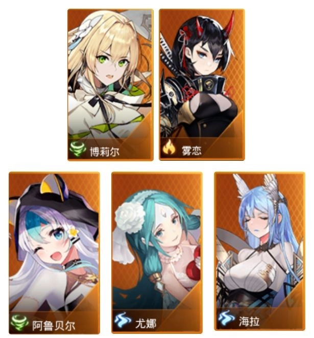 ●后排:阿鲁贝尔、尤娜、海拉(无尤娜可换霜星,海拉可换拉比丝)