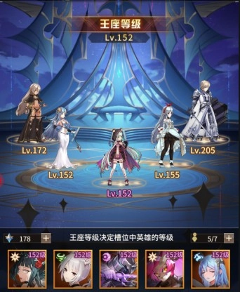 英雄池内等级最高英雄自动成为王座供奉英雄,槽位内的英雄等级会统一提升至王座内最低等级并可正常进行升阶和各游戏玩法内使用。能够让我们不需要花费额外的资源去培养非主力英雄~因此资源主要培养王座内供奉英雄,其他后备或者需要偶尔用到的可以放到白玉王座内提升等级。
