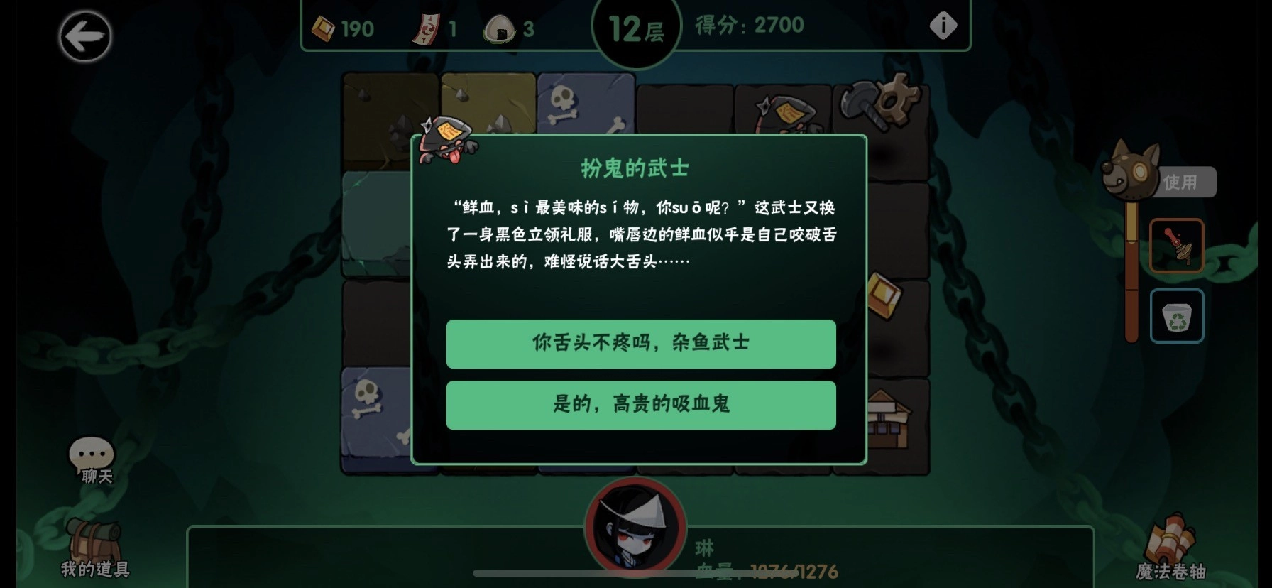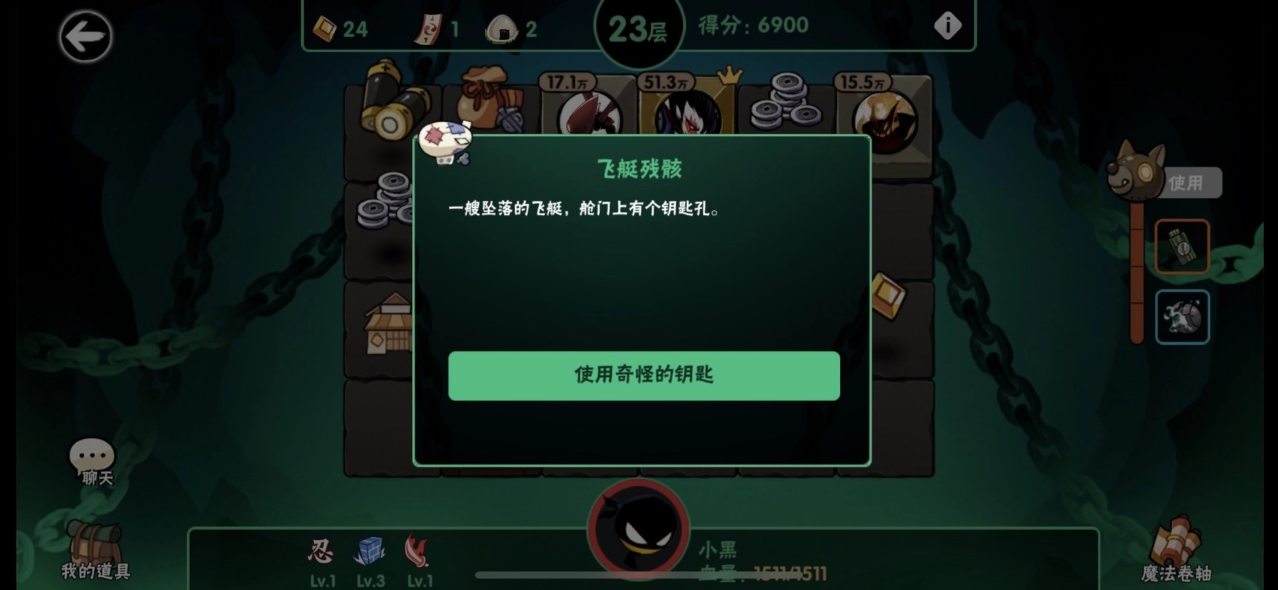 选择,在上一层看到银枭的话,他会把你送到下一层(刚买了钥匙却懒得打boss的我直接哭晕了)