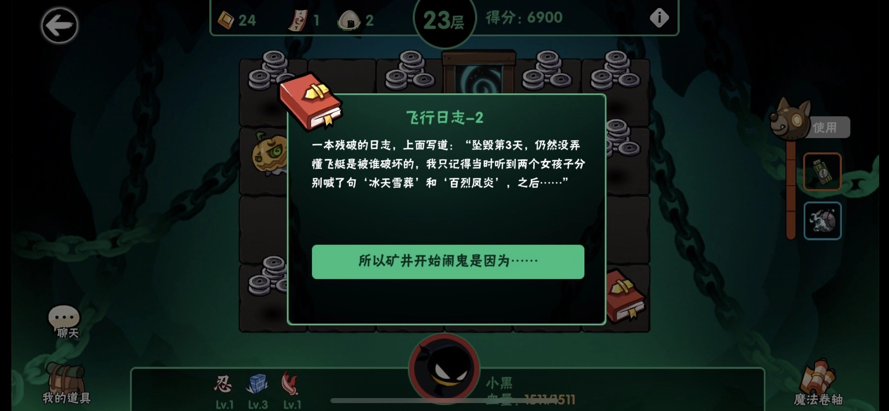 奇怪的钥匙在23层可以打开飞船残骸,里面有两本日记