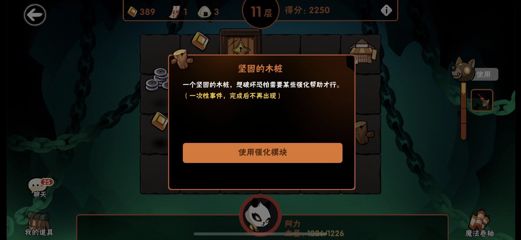 比如,我带的强化模块,在点击使用时,就不是对boss造成伤害了,而是强化自身的攻击力