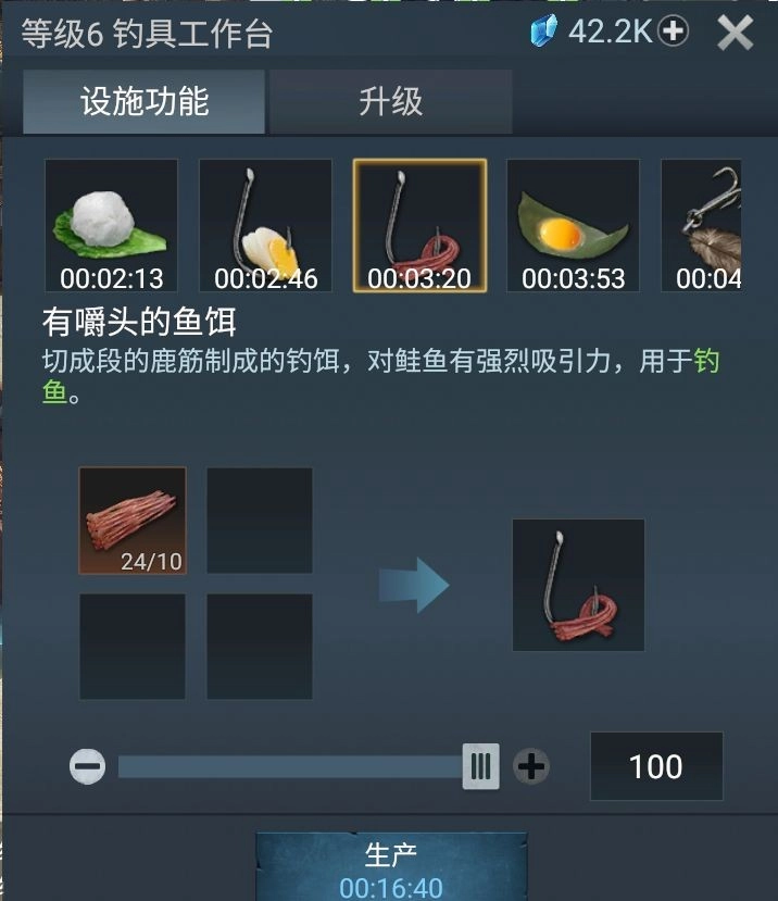 有了钓鱼竿,我们便可以去野外鱼塘钓鱼了。只是随手获取的饵料对鱼儿的吸引效果有限,如果幸存者想更高效的钓鱼,可以选择制作一些特别的钓鱼饵料。不同的饵料可以吸引不同种类的鱼,让我们钓鱼事半功倍。