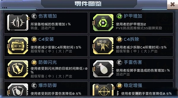 1、零件只能装配在永久主武器和副武器(限时武器不可装配零件,近战武器、投掷武器无法装配零件));