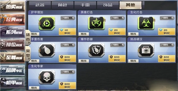 角色增强:【生化专家】【挑战硬汉】【护甲增强】【C4拆除】【c4安装】【防御闪光】【爆炸防御】