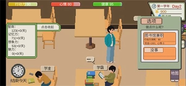 这款游戏对真实的大学生活进行了模拟,玩家能够自主决定自身的发展方向。