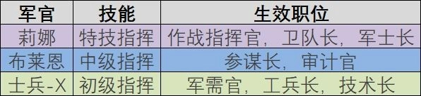 2. 被任命职位的军官不会被占用,可同时在各个部门任职或被调用于出征任务中。