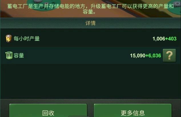 工厂的产量与其数量、等级成正比,我们应尽可能地提升缺少资源对应的工厂等级。如果发现地块不够用的时候,还可以通过回收功能来收起地块上现有的建筑,建筑等级将会保留。
