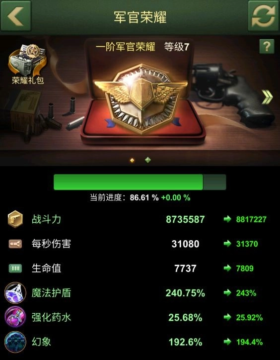 使用军官荣耀强化后,可以突破技能的固有上限,让技能更上一层楼~