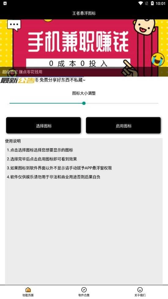 如果图标到软件界面以外不显示请手动打开悬浮窗权限