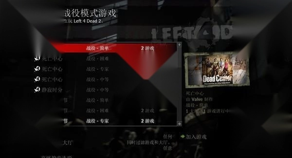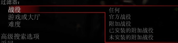 下面还可以对房间进行要求筛选:战役地图,已进行的游戏或者房间大厅,难度