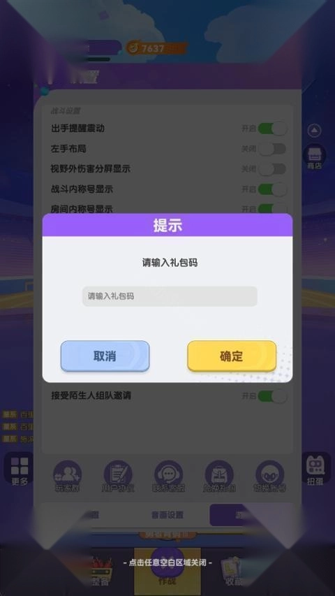 3、接着找到兑换礼包的入口,在兑换输入框中填写礼包码,确认提交就可以了。