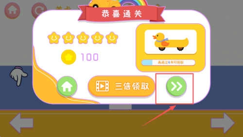 4、最后,完成关卡后点击“三倍领取”按钮获取奖励,然后点击箭头按钮继续下一关。