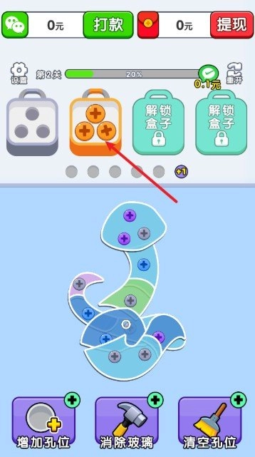 1、首先进入游戏,点击屏幕上的螺丝可以将其取出,放入对应盒中。