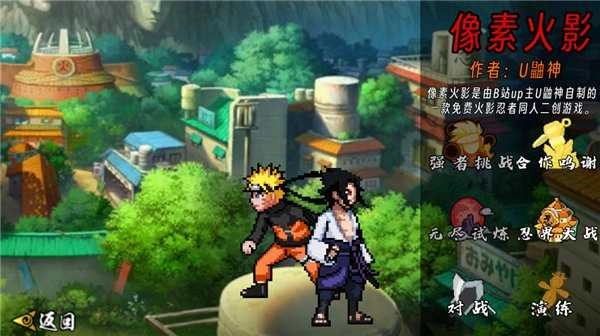 经典复古的像素风图形打造的各种帅气忍者,可以操控这些忍者来同其它动漫之中的角色进行格斗。