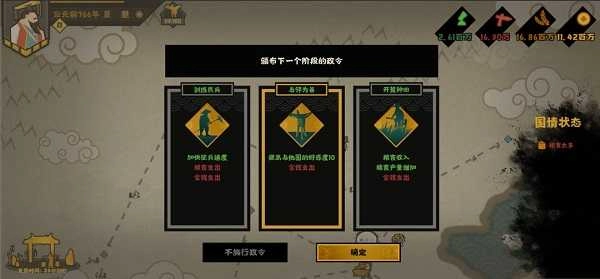 在这个版本中,大家可以在开局的时候选择一些名臣来辅助你进行国家的治理。