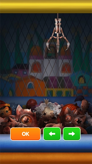 2、进入游戏后,点击左右按钮,移动爪子抓娃娃;