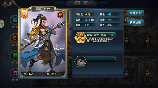 2、大致打法:刘备需与徐庶联动上阵来实现成长;马超依靠自身完成成长;张角则借助其他角色阵亡的契机成长;魏延飞升后每回合都能增加攻击力。简言之,这套阵容通过多维度的持续成长,逐步消耗对手的上阵英雄,确保自身存活并不断拉开卡差。
