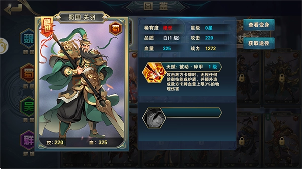 铜雀三国最新版是一款以三国为背景的策略卡牌游戏,玩家将在游戏中穿越回三国时代,化身主公招募各路知名武将,充分施展自己的策略才能,还有超多烧脑玩法等你解锁,快来体验吧!