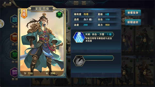 2、基本玩法思路:以站场消耗为核心策略,通过持续消耗对手卡牌资源来争取胜利。该玩法在单个回合内具备极强的爆发能力,足以实现对敌方阵容的团灭。具体操作要点如下:周瑜需完成飞升,以解锁提供50%伤害加成的借法技能;孙策作为绝世品质卡牌,技能等级提升难度较大;因此,回合内的主要输出任务将由孙权和小乔共同承担。