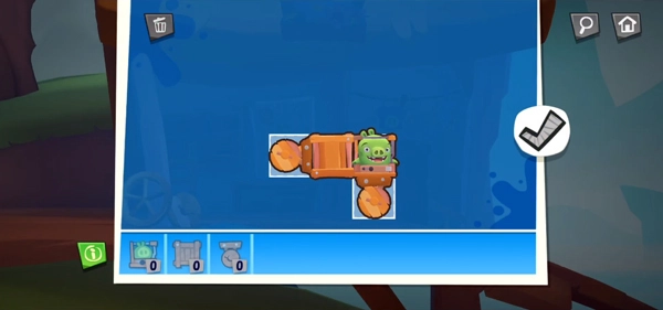 4、玩家需按照提示为捣蛋猪组建一个战车,组建好后点击勾号启动;