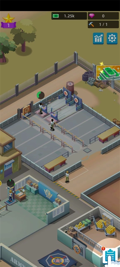 各种特色场地期待你来开启!射击练习、障碍挑战、室内打靶、街巷作战、拳击对决、轰炸演练等应有尽有。你只需点击操作并完成升级,用赚取的现金投入基地建设与升级,解锁各类训练设施,提升声望等级,不断壮大军队规模,最终打造一个强大的军事商业帝国!