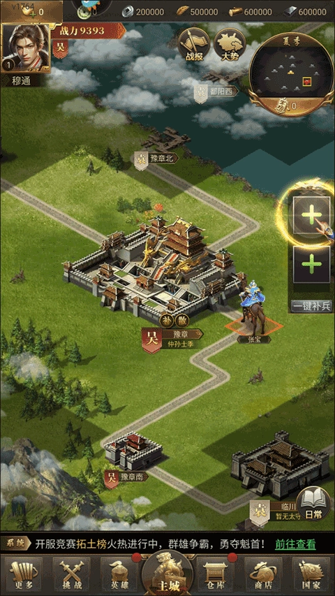 4、城池治理:每当新占领一个城池时,城池上会出现治理任务,完成可以获得大量资源和元宝奖励,并解锁城池的建设