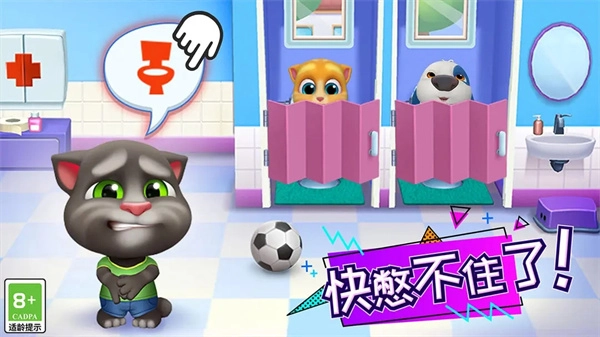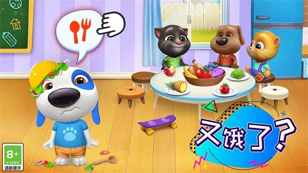 2、点击“会说话的汤姆猫家族”六位成员头顶的图标,可以喂它们吃饭,给它们洗澡。你一定会成为一个最好的主人,而它们也会成为你的最好的宠物伙伴。