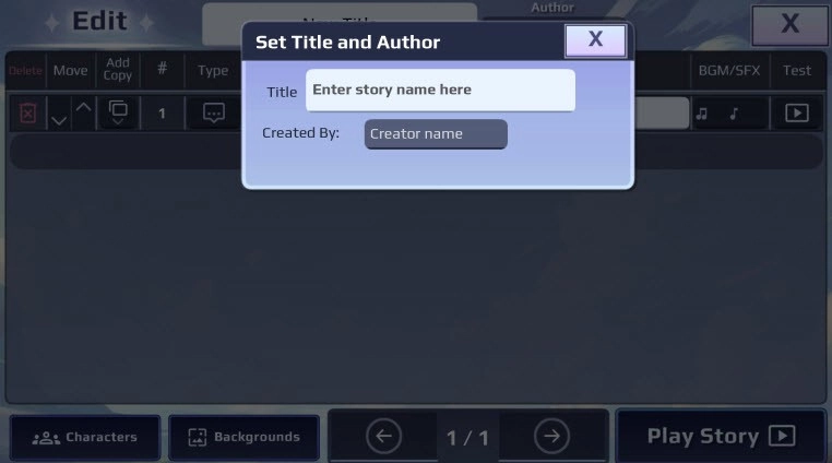 3、填写好剧本的基本信息后,便会进入剧本界面。在该界面中,玩家能够自行设定剧本故事的发生地点,以及人物、对话等相关内容。