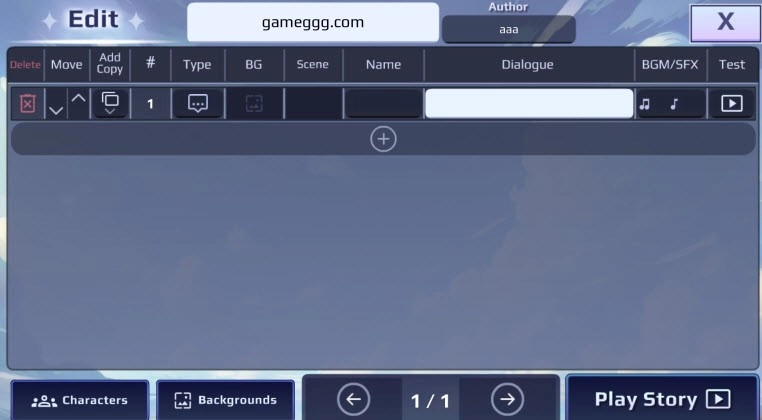 6、点击主界面底部的“+”号能够添加对话场景,等所有设置都完成后,点击右侧的“test”播放按钮就可以预览你创作的故事内容。