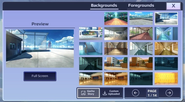 5、同样地,我们点击主界面底部的“backgrounds”,就能选择故事剧情的发生地点。